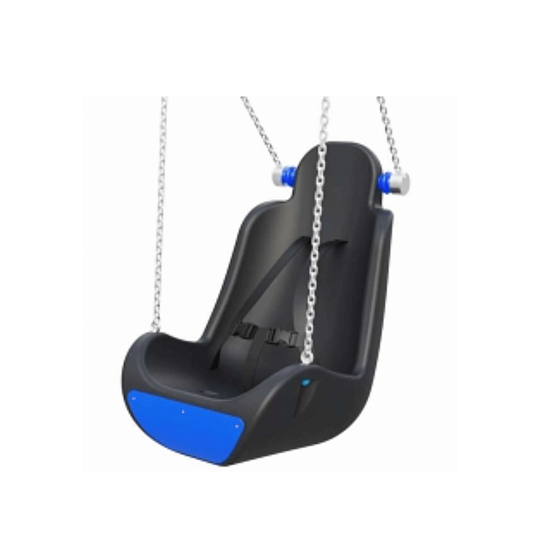 Dette gyngesæde er specielt designet til børn med særlige behov og kan bære en maksimal vægt på 120 kg, hvilket gør det velegnet til børn i alderen 5-14 år. Det er ideelt til legepladser, der ønsker at være inkluderende og sikre, at alle børn kan nyde gyngeture på en sikker måde. Gyngesædet inkluderer en sikkerhedssele, som fastgør barnet sikkert i gyngen, og det leveres med en galvaniseret ophængningskæde til montering på en 2,5 meter bjælke. For at forhindre ophobning af regnvand i sædet er der et afløbshul i gyngen, hvilket gør det mere komfortabelt og hygiejnisk.